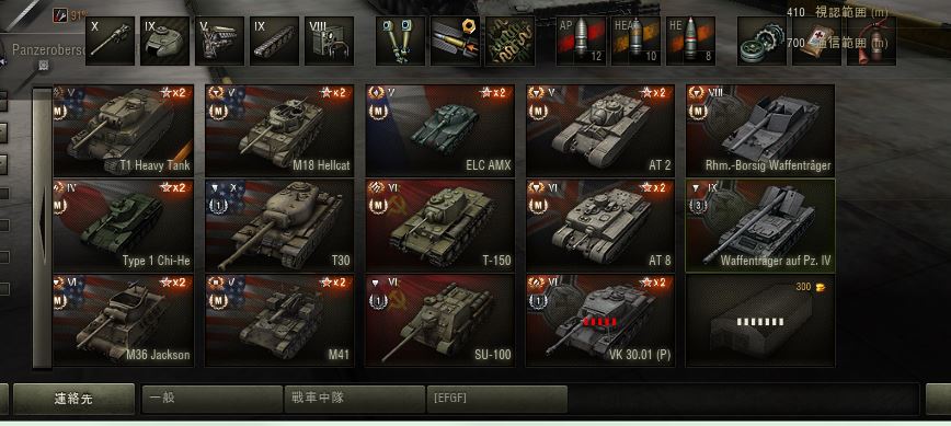 | Tier\車種 | 軽戦車(国) | 中戦車(国) | 重戦車(国) | 駆逐戦車(国) | 自走砲(国) |